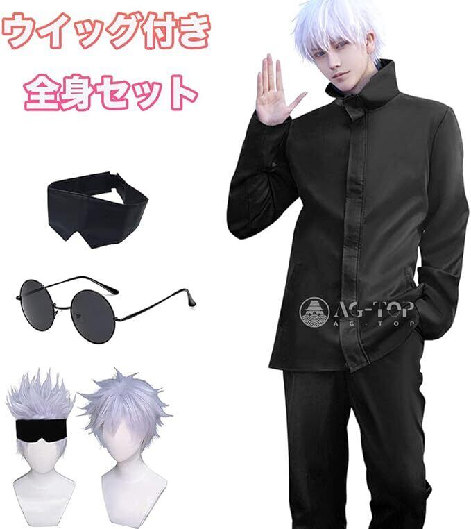 【セット内容】ウイッグ+衣装全体。 五条悟のコスプレ衣装です。