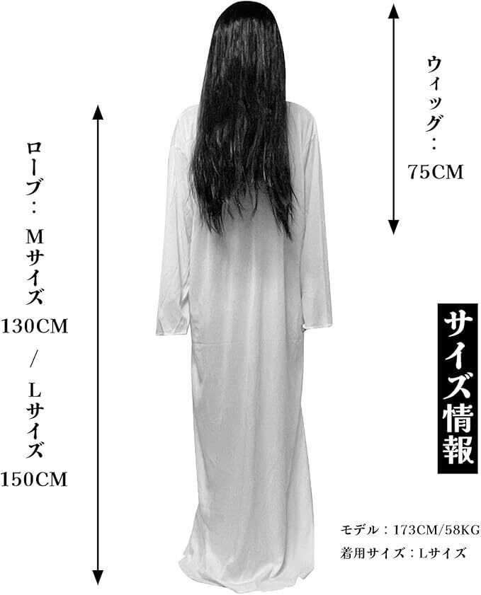 【クオリティー】貞子衣装のローブは優秀なポリエステル素材と厳密な縫製で作られ、通気性と弾力性が揃って着心地が楽です。ウィッグは繊細と柔軟な人造繊維から製造され、できるだけリアル感を演出します。